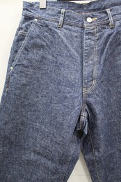ブルックリンオーバーオールの定番素材の1970年代に作られたデニム【KD8】のインディゴブルーを再現すべく、岡山県井原地区の染色、紡績、機屋が協業して生み出したデニムを使用。少し赤味の入ったネイビーの色合い、そして洗い後のシボ感など独特な風合いがあり、旧型の織機が生み出す生地は温かみのある雰囲気を醸し出します。こちらのタイプはたっぷりとゆとりを感じるワイドシルエットのデニムパンツです。フロントの斜めにカットされたスラントポケットは、手が入れやすく機能的で、見た目もスラックスやチノパンを彷彿とさせる上品な仕様になっています。