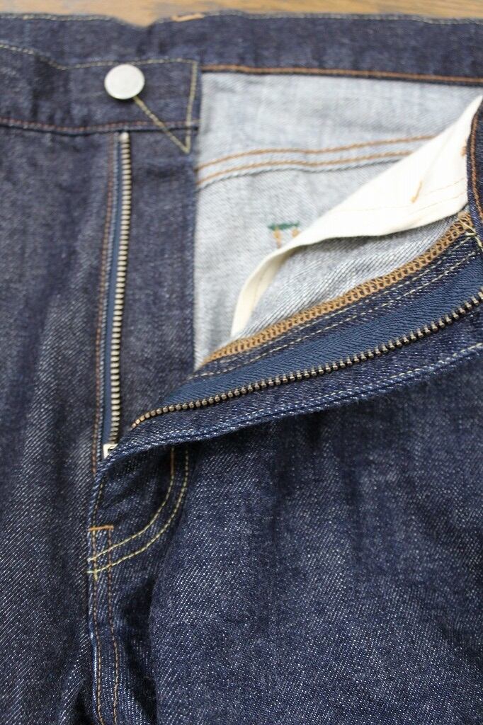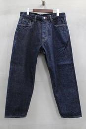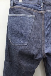 原料の綿の産地をアメリカと、アメリカ国境近くのメキシコチワワ州のものを使い、ルーツが近い綿を使い織り上げた、色合いと表情が微妙に異なる2種類のデニム生地をクレイジーパターンで仕立てたルーズフィットデニムパンツです。はっきりとした色の差ではなく、経年で色合いが落ち着いてきたかのような表情がポイントです