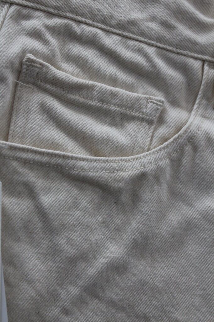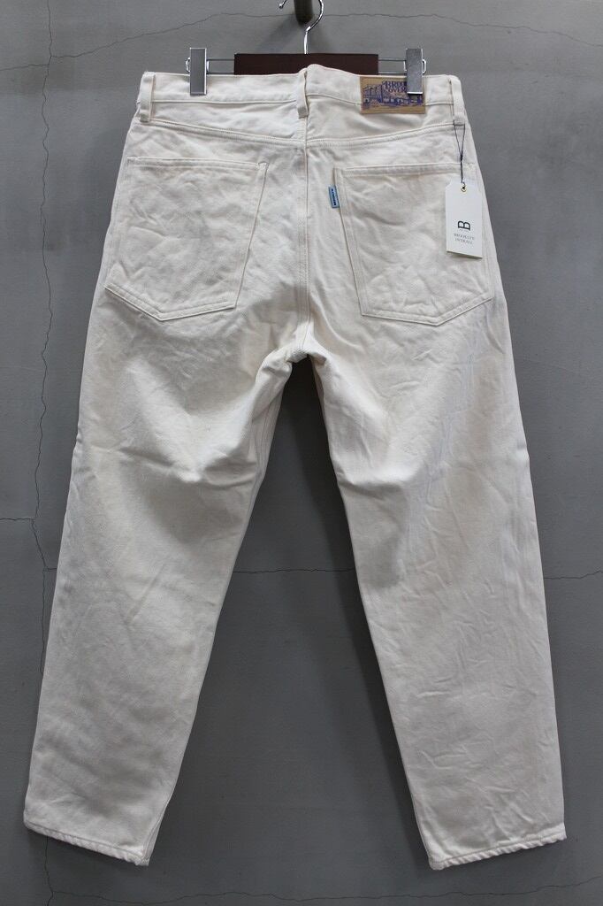 素材はブルックリンの定番デニムの産地の備後地区、USA綿を主原料としたヘビーオンスの生地を使用したルーズフィットデニムパンツです。程よく余裕のあるシルエットと白過ぎないオフホワイトの色味が気負い無く履けるデニムパンツです。こちらのカラーは春夏秋冬季節関係なくオススメです