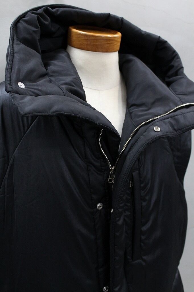 アルカリ処理をすることで溶ける繊維と溶けない繊維とが混ざった混繊糸の割織糸を使用。糸が細いためポリエステル素材とは思えない柔らかな風合いと落ち感が特徴でこちらのベストもやわらかくシルクタッチの表面感は必見です。ダウンなどは使わずに膨らみを抑えながら季節的な温かみも残した中綿入りのオーバーサイズのベストになります