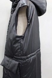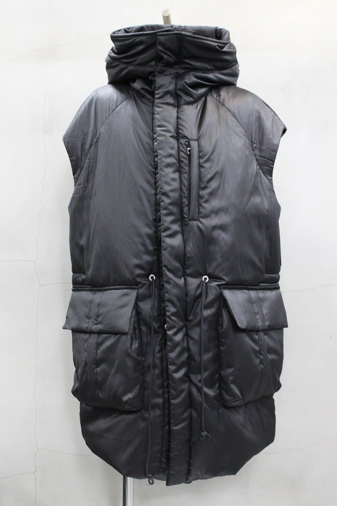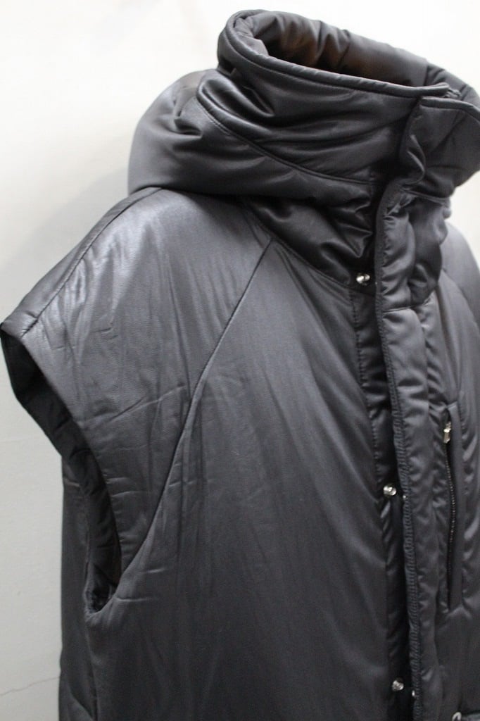 bajra バジュラ 割織パテッドフーデッドベスト ブラック